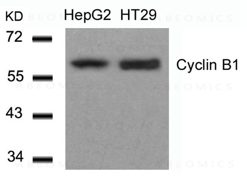 Figure 1: Western blot analysis of extracts from HepG2 and HT29 cells using Cyclin B1(Ab-147) Antibody 35-1743 .