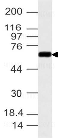 Fig-1: Western blot analysis of CYP1B1. Anti-CYP1B1 antibody (11-1003) was used at 4 µg/ml on A549 lysate.