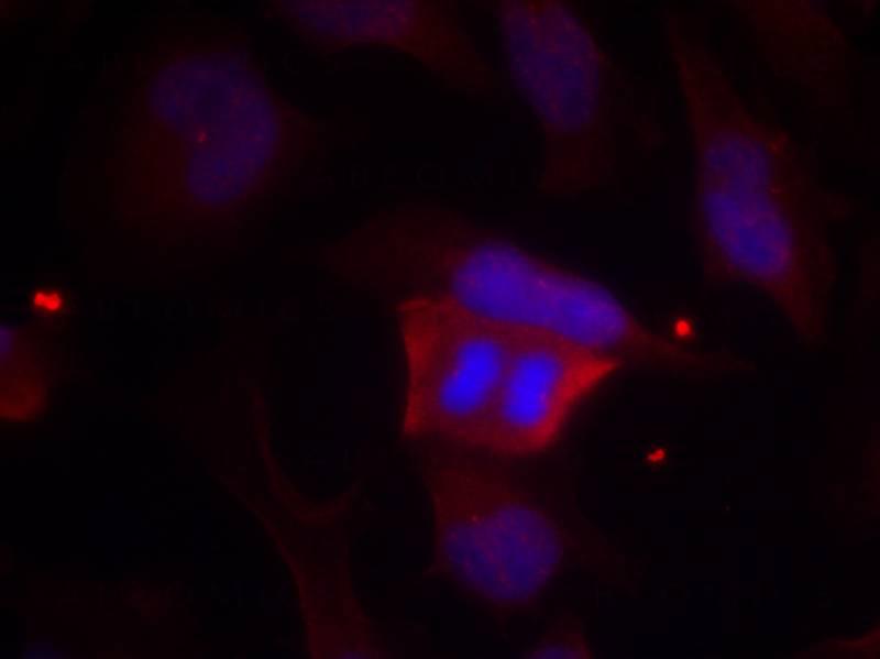 Figure 1: Immunofluorescence staining of methanol-fixed Hela cells using DARPP-32(Phospho-Thr75) Antibody 35-1175 .