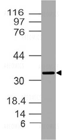 Figure-1: Western blot analysis of DEDD2 . Anti- DEDD2 antibody (20-1062) was used with 1:2000 dilution on Raw lysate.
