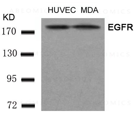 Figure 1: Western blot analysis of extracts from HUVEC and MDA cells using EGFR(Ab-1197) Antibody 35-1559 .