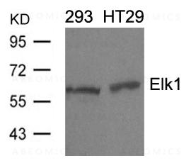 Figure 1: Western blot analysis of extracts from 293 and HT29 cells using Elk1(Ab-389) Antibody 35-1394 .