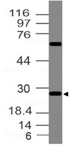 Figure-1: Western blot analysis of Erythropoietin. Anti-Erythropoietin antibody (11-7584) was used at 2 µg/ml on h Liver lysate.