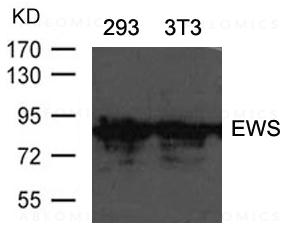 Figure 1: Western blot analysis of extracts from 293 and 3T3 cells using EWS Antibody 35-1684 .