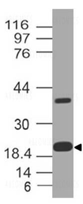 Figure-1: Western blot analysis of Ferritin Light Chain. Anti-Ferritin Light Chain antibody (11-8122) was used at 0.1 µg/ml on h Lung lysate.