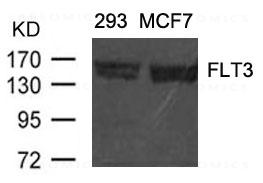 Figure 1: Western blot analysis of extracts from 293 and MCF cells using FLT3(Ab-591) Antibody 35-1526 .