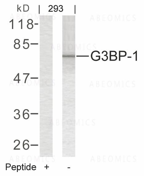 Figure 1: Western blot analysis of extracts from 293 cells using G3BP-1 (Ab-232) Antibody 35-1455 and the same antibody preincubated with blocking peptide.
