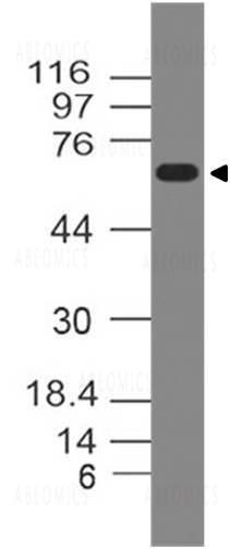 Fig-1: Western blot analysis of GAD65. Anti-GAD65 antibody (11-7570) was used at 2 µg/ml on h Pancrease lysate.