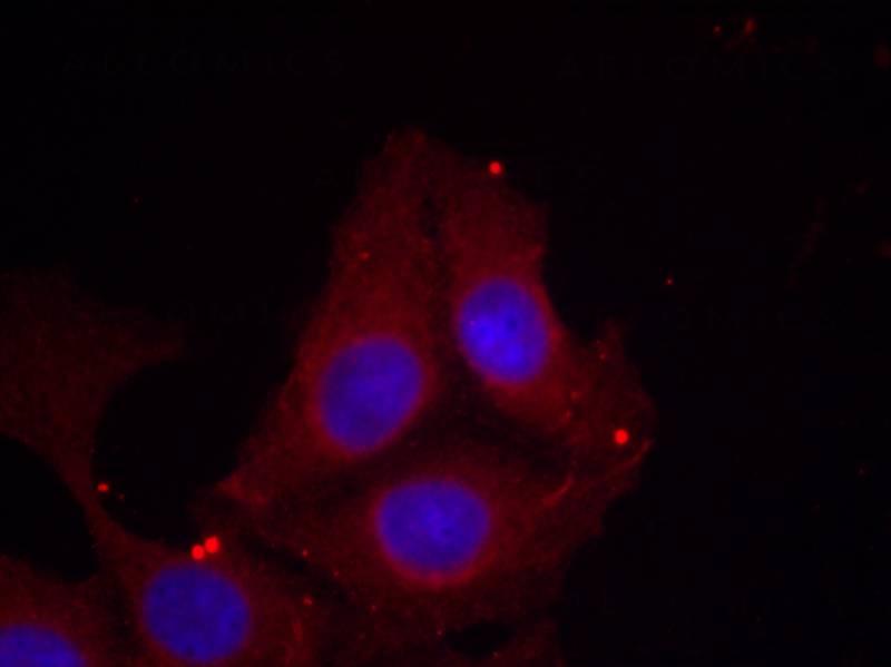 Figure 1: Immunofluorescence staining of methanol-fixed Hela cells using GAP43(Phospho-Ser41) Antibody 35-1257 .