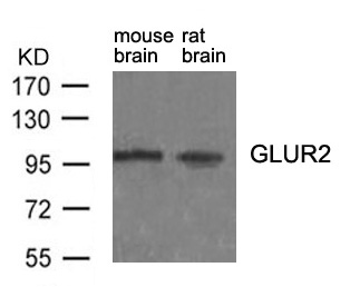 Figure 1: Western blot analysis of extracts from mouse brain and rat brain tissue using GluR2 (Ab-880) Antibody 35-1614 .