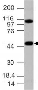 Figure-1: Western blot analysis of GPR83. Anti-GPR83 antibody (11-4002) was used at 4 µg/ml on MCF-7 lysate.
