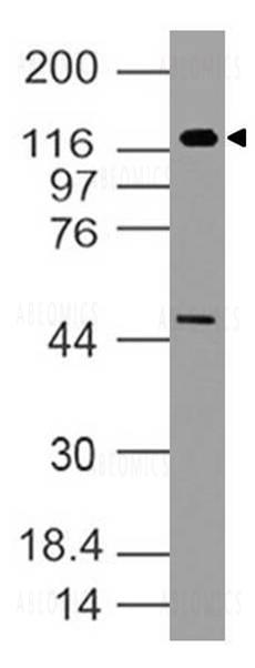Figure-1: Western blot analysis of h TLR5. Anti-h TLR5 antibody (11-3047) was used at 2 µg/ml on Raji lysate.