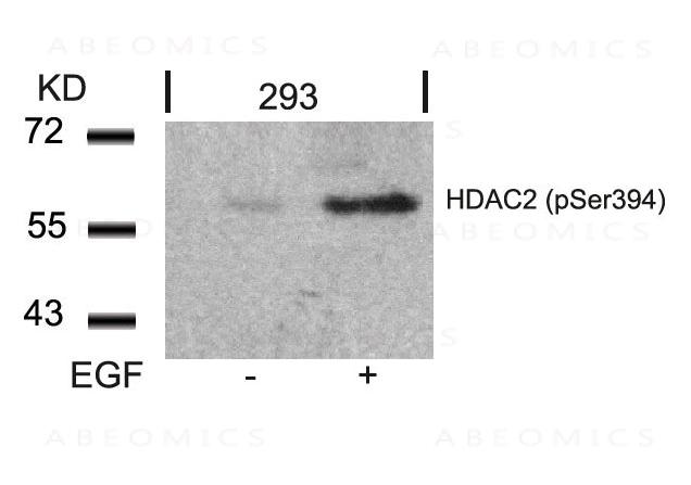 Figure 1: Western blot analysis of extracts from 293 cells untreated or treated with EGF using HDAC2(Phospho-Ser394) Antibody 35-1181 .