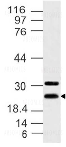 Fig-1: Western blot analysis of Hes7. Anti-Hes7 antibody (11-8084) was used at 1 µg/ml on 293 lysate.