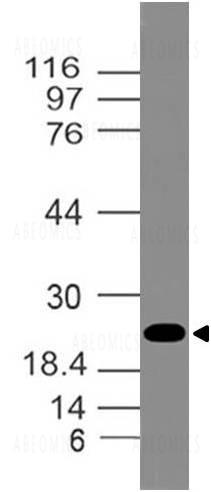 Fig-1: Western blot analysis of HMGB1. Anti-HMGB1 antibody (11-3045) was used at 1 µg/ml on HepG2 lysate.