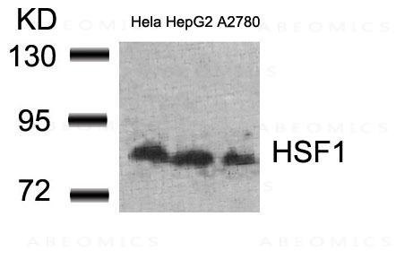 Figure 1: Western blot analysis of extracts from Hela, HepG2 and A2780 cells using HSF1(Ab-307) Antibody 35-1544 .