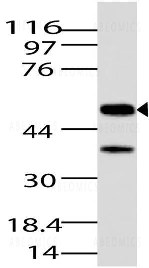 Fig-1: Western blot analysis of JMJD5. Anti-JMJD5 antibody (11-8060) was used at 4 µg/ml on Brain lysate.