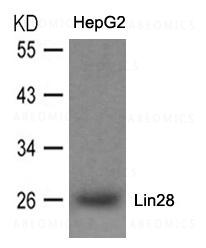 Figure 1: Western blot analysis of extracts from HepG2 cells using Lin28 Antibody 35-1680 .