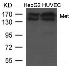 Figure 1: Western blot analysis of extracts from HepG2 and HUVEC cells using Met (Ab-1234/1235) Antibody 35-1853 .