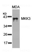 Figure 1: Western blot analysis of extracts from MDA cells using MKK3 (Ab-189) Antibody 35-1466 .