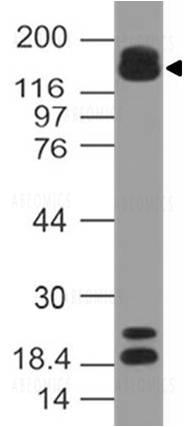 Fig-1: Expression analysis of MRF2. Anti-MRF2 antibody (11-12017) was used at 1 µg/ml on HCT-116 lysate.