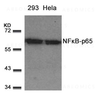 Figure 1: Western blot analysis of extracts from 293 and Hela cells using NFkB-p65(Ab-529) Antibody 35-1548 .