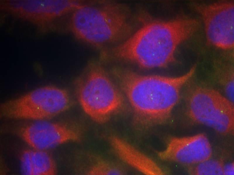 Figure 1: Immunofluorescence staining of methanol-fixed Hela cells using NMDAR1(Ab-897) Antibody 35-1617 .