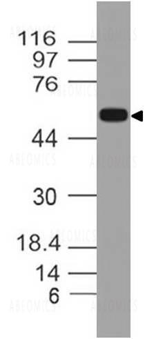 Figure-1: Western blot analysis of Olfactomedin-4. Anti-Olfactomedin-4 antibody (11-7588) was used at 2 µg/ml on h Stomach lysate.