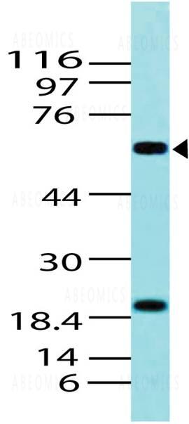 Fig-1: Western blot analysis of p63 . Anti- p63 antibody (11-7525) was used at 4 µg/ml on A375 lysate.