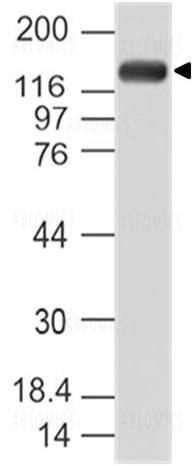 Fig-1: Western blot analysis of PER1. Anti- PER1 antibody (11-10027) was used at 4 µg/ml on Hela lysate.