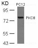 Figure 1: Western blot analysis of extracts from PC12 cells using PKCth(Ab-676) Antibody 35-1619 .