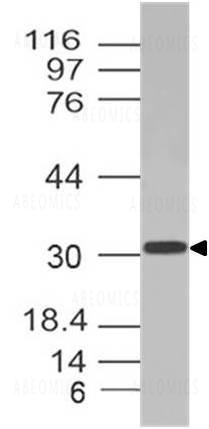 Fig-1: Western blot analysis of PU.1. Anti-PU.1 antibody (11-4041) was used at 4 µg/ml on Spleen lysate.