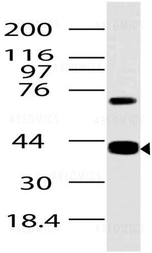 Fig-1: Western blot analysis of RAGE. Anti-RAGE antibody (11-4029) was used at 2 µg/ml on Liver lysate.
