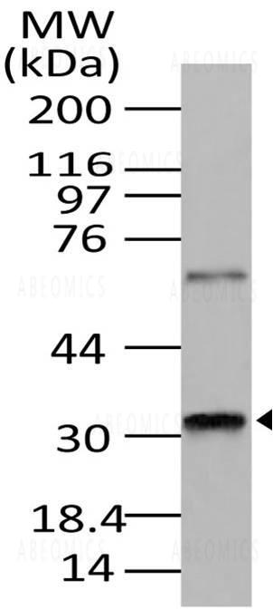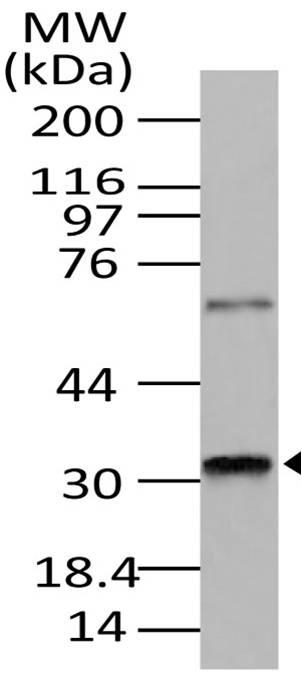 Fig-1: Western blot analysis of Rax. Anti-Rax antibody (11-13004) was used at 1 µg/ml on K562 lysate.