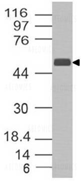 Figure-1: Western blot analysis of RISC. Anti-RISC antibody (11-8118) was used at 1 µg/ml on h Liver lysate.