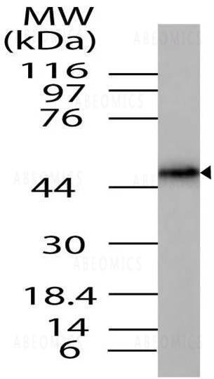 Fig-1: Western blot analysis of RUNX2/ AML-3. Anti-RUNX2/ AML-3 antibody (11-8001) was used at 1 µg/ml on MCF-7 lysate.