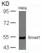 Figure 1: Western blot analysis of extracts from Hela cells using Smad1(Ab-465) Antibody 35-1642 .