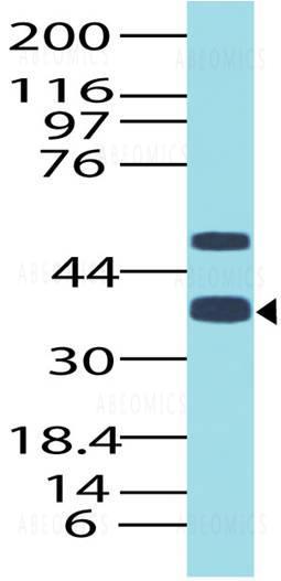 Fig-1: Western blot analysis of TTF1. Anti-TTF1 antibody (11-7538) was used at 2 µg/ml on A549 lysate.