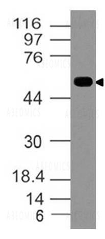 Figure-1: Western blot analysis of Wnt5a. Anti- Wnt5a antibody (11-10006) was used at 1 µg/ml on Hela lysate.