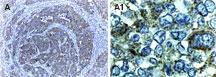 Fig:1 Immunohistochemical analysis of XIAP in formalin-fixed, paraffin-embedded human small cell lung carcinoma using 20-1110 at 1:2000. A, low magnification. A1, high magnification. Hematoxylin-eosin counterstain.