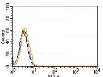 Figure-1:Cell surface flow analysis of Rabbit IgG Isotype control in Jurkat Cell line using 0.5/10^6 cells. Black represent cell alone, grey represent secondary antibody control and orange represent Rabbit IgG Isotype with anti-rabbit secondary antibody conjugated with PE (Cat No.-11-201).