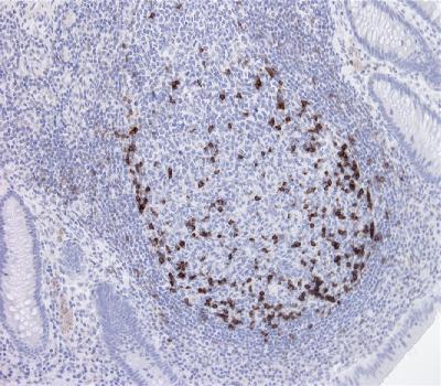 Figure-1: Immunohistochemical analysis of PD1 (Clone: BSR1) antibody on appendix x200 using 1:200 dilution.