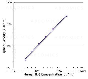 Figure 1: Standard curve generated with Rat Anti-Human IL-3 and Rat Anti-Human IL-3-Biotin followed by Streptavidin-HRP