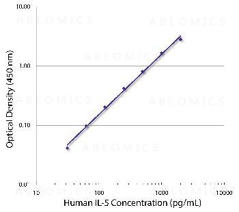 Figure 1: Standard curve generated with Rat Anti-Human IL-5 and Rat Anti-Human IL-5-Biotin followed by Streptavidin-HRP