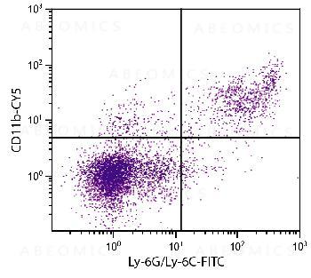 Figure 1: BALB/c mouse splenocytes were stained with Rat Anti-Mouse CD11b-CY5 and Rat Anti-Mouse Ly-6G/Ly-6C-FITC .