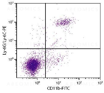 Figure 1: BALB/c mouse splenocytes were stained with Rat Anti-Mouse CD11b-FITC and Rat Anti-Mouse Ly-6G/Ly-6C-PE .