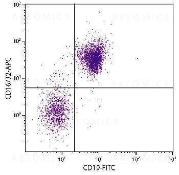 Figure 1: BALB/c mouse splenocytes were stained with Rat Anti-Mouse CD16/32-APC and Rat Anti-Mouse CD19-FITC .