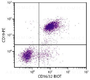 Figure 1: BALB/c mouse splenocytes were stained with Rat Anti-Mouse CD16/32-Biotin and Rat Anti-Mouse CD19-PE followed by Streptavidin-FITC .