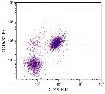 Figure 1: BALB/c mouse splenocytes were stained with Rat Anti-Mouse CD16/32-PE and Rat Anti-Mouse CD19-FITC .