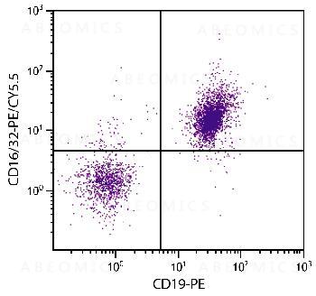 Figure 1: BALB/c mouse splenocytes were stained with Rat Anti-Mouse CD16/32-PE/CY5.5 and Rat Anti-Mouse CD19-PE .